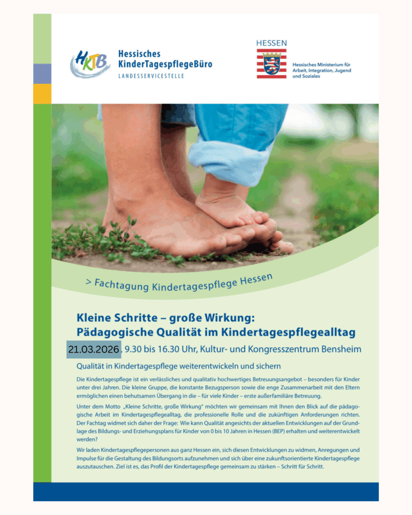 Meine Arbeit mit pädagogischen Fachkräften in Krippe, Kita und Kindertagespflege richtet sich nach dem hessischen Bildungs- und Erziehungsplan. Der Schwerpunkt meiner Arbeit ist die Begleitung von Kindern unter 3 Jahren.